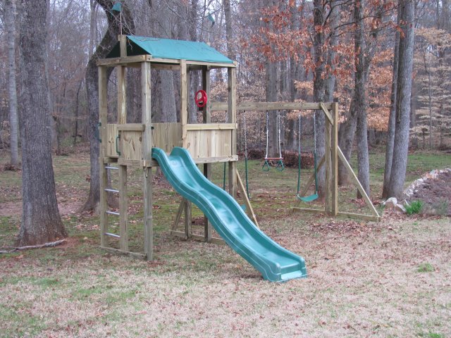 HOP's original playset, the Jungle House, includes a traditional-style clubhouse complete with ladder entry and an 8' escape wave slide.  This play set also includes a 3-position swing beam ready for years of fun.